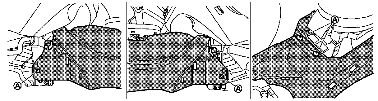 1.Insert a remover tool (A) between cluster tray and instrument panel assembly, and then pull downward and disengage metal clips.