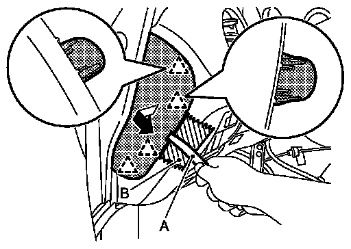 Apply protective tape (B) on the part to protect it from damage.