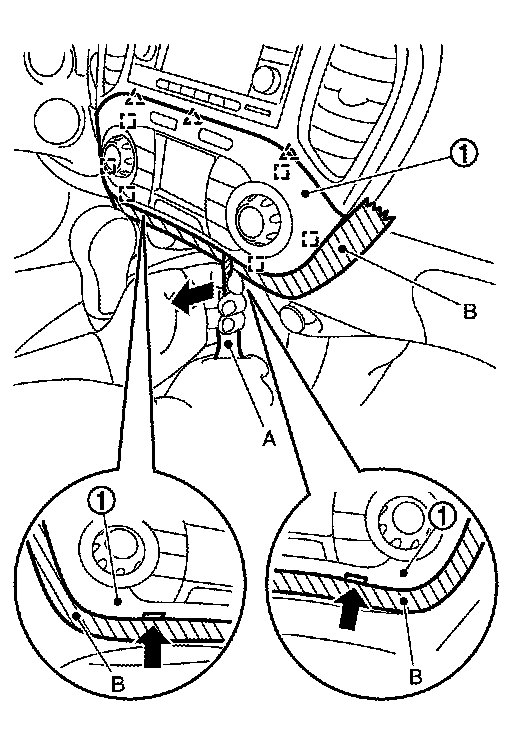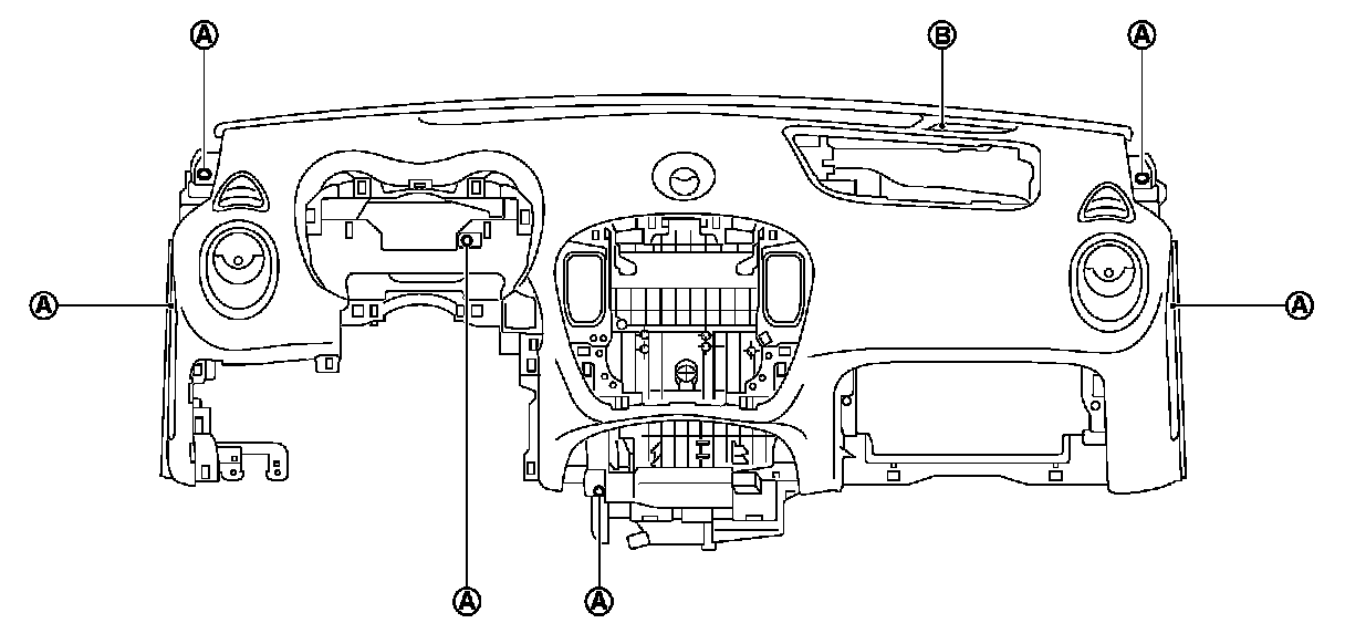 1.Remove instrument panel assembly mounting screws (A) and bolts (B).