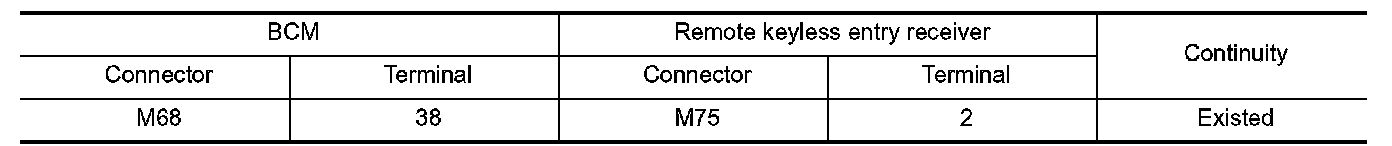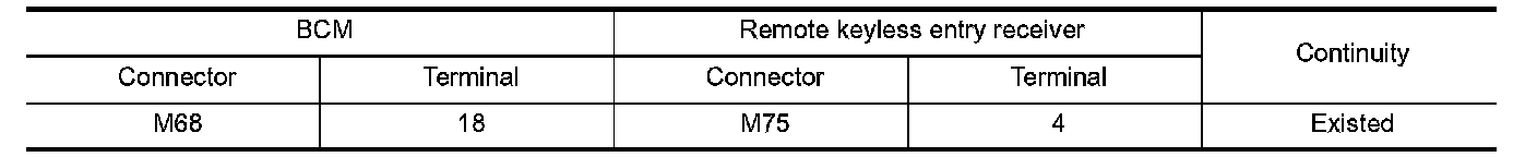 2.Check continuity between BCM harness connector and remote keyless entry receiver harness connector.