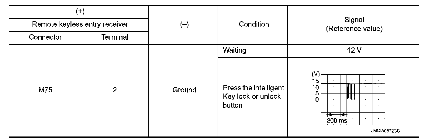 2.Check signal between remote keyless entry receiver harness connector and ground using oscilloscope.