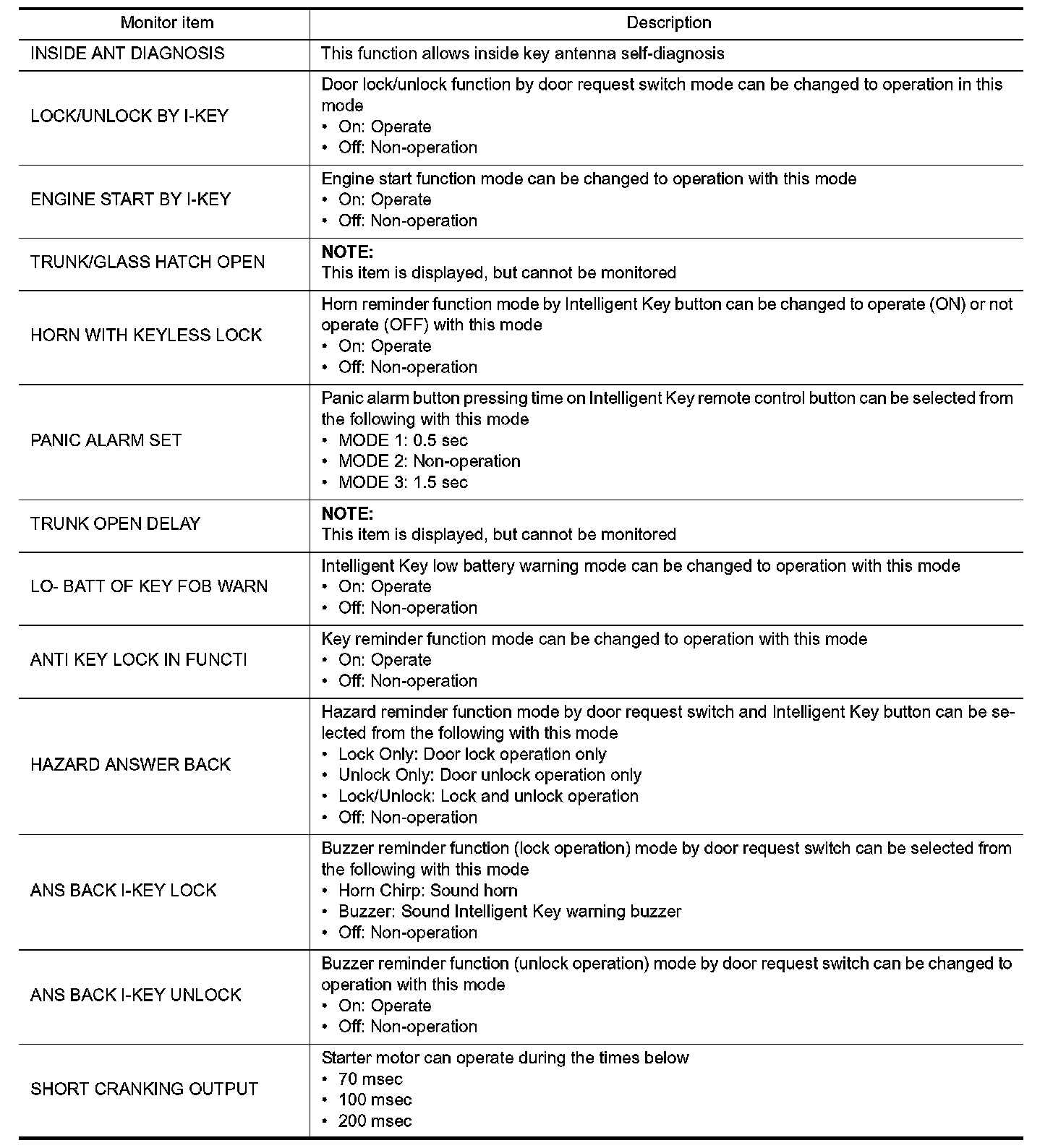 INTELLIGENT KEY : CONSULT Function (BCM - INTELLIGENT KEY)