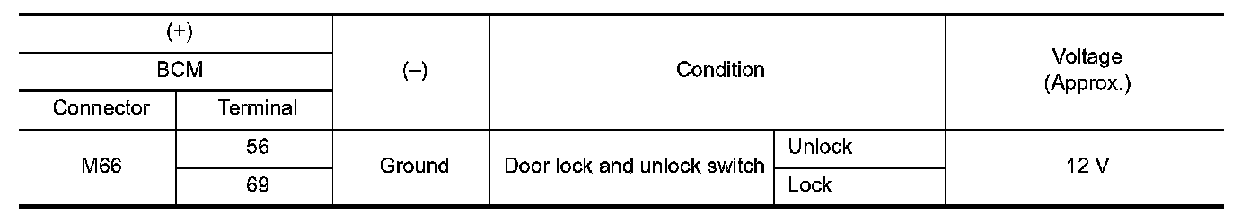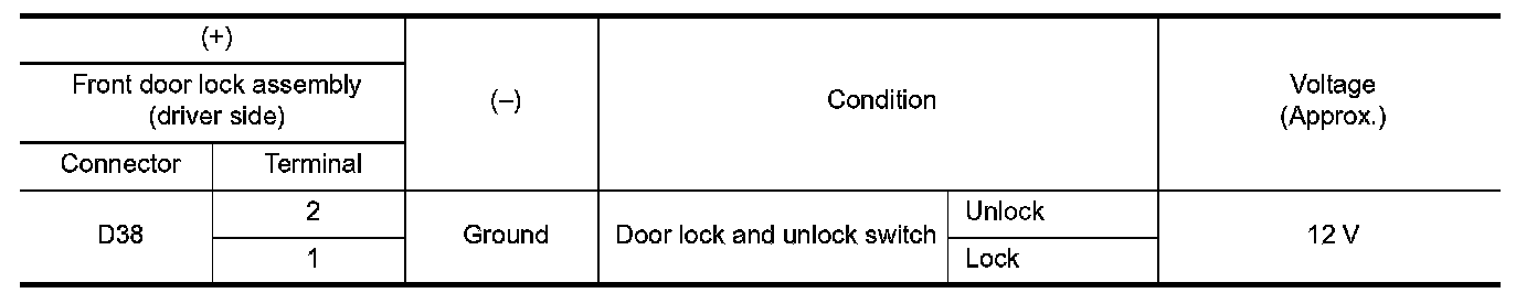 3.Check voltage between front door lock assembly (driver side) harness connector and ground.