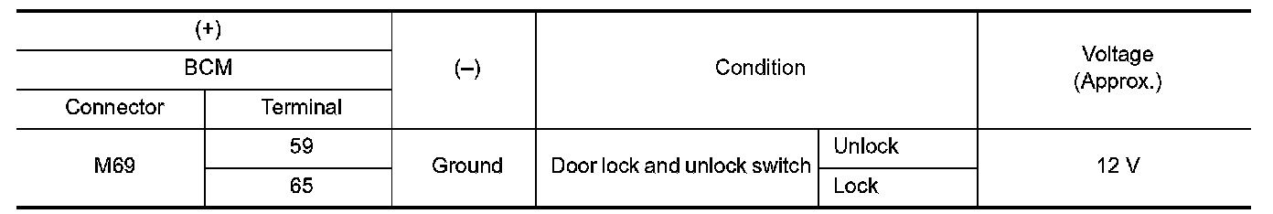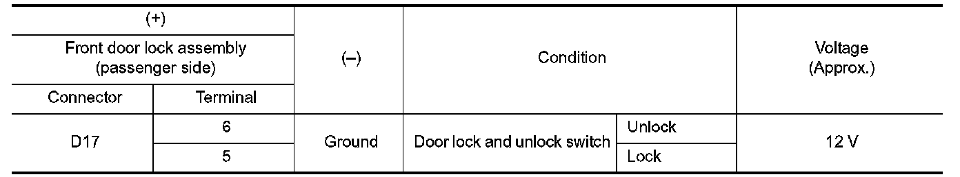 3.Check voltage between front door lock assembly (passenger side) harness connector and ground.