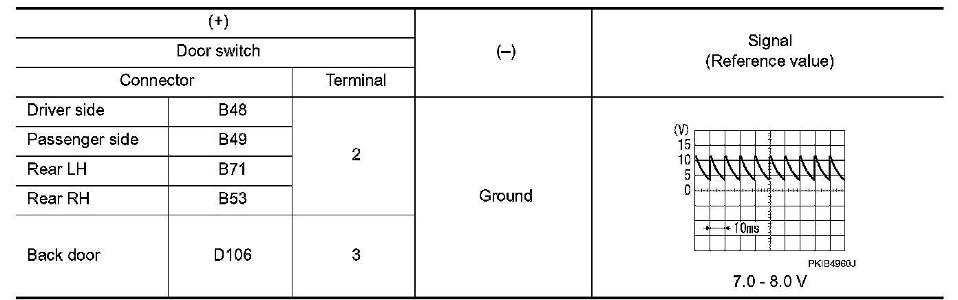 3.Check signal between malfunctioning door switch harness connector and ground using oscilloscope.