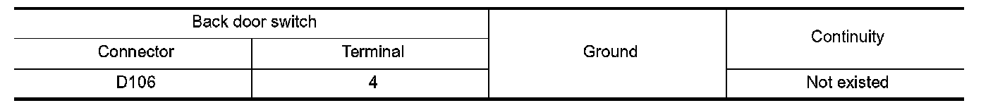 Check continuity between back door lock assembly harness connector and ground.