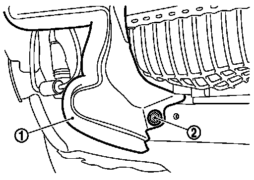 2.Remove lower fixing clips (2) of radiator side seal (LH and RH)