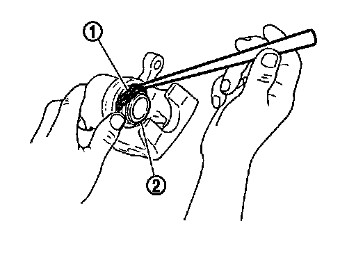 3.Apply rubber grease to piston boots (1). Cover the piston (2) end with piston boot, and then install cylinder side lip on piston boot securely into a groove on cylinder body.