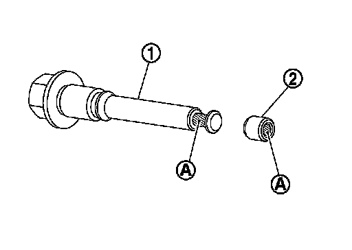 5.Apply rubber grease to mating faces (A) between sliding pin bolt (1) and bushing (2), and install bushing to sliding pin.