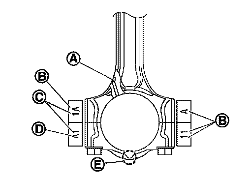 - When the specified connecting rod bearing oil clearance is not obtained with standard size connecting rod bearings, use undersize (US) bearings.