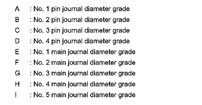 2.Apply crankshaft pin journal diameter grade stamped on crankshaft front side to the column in the "Connecting Rod Bearing