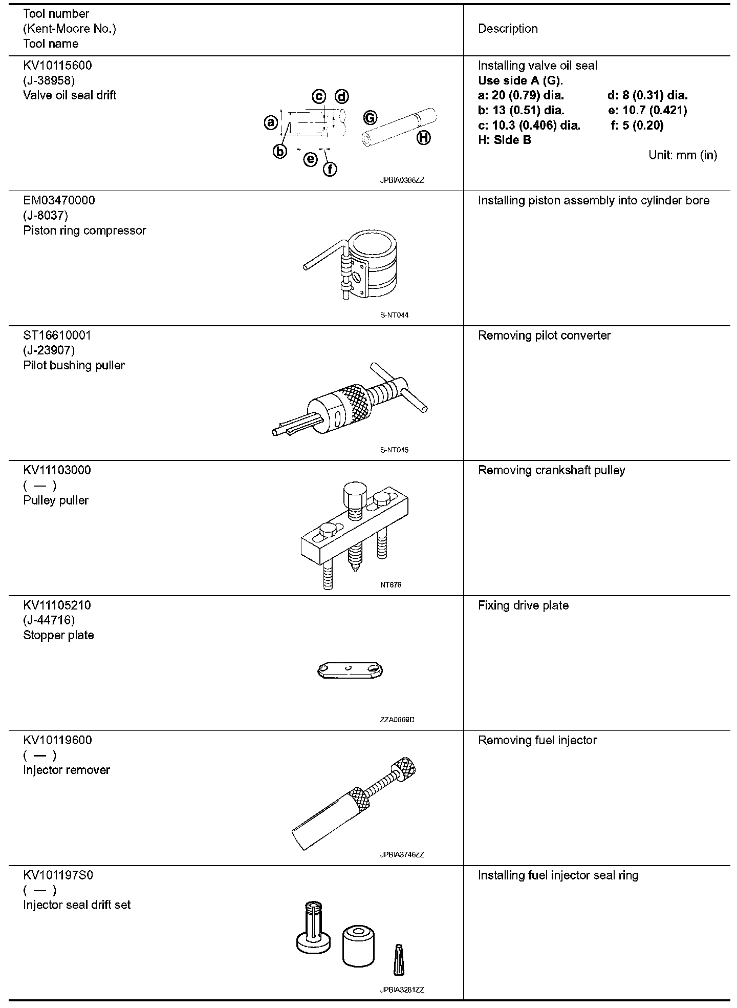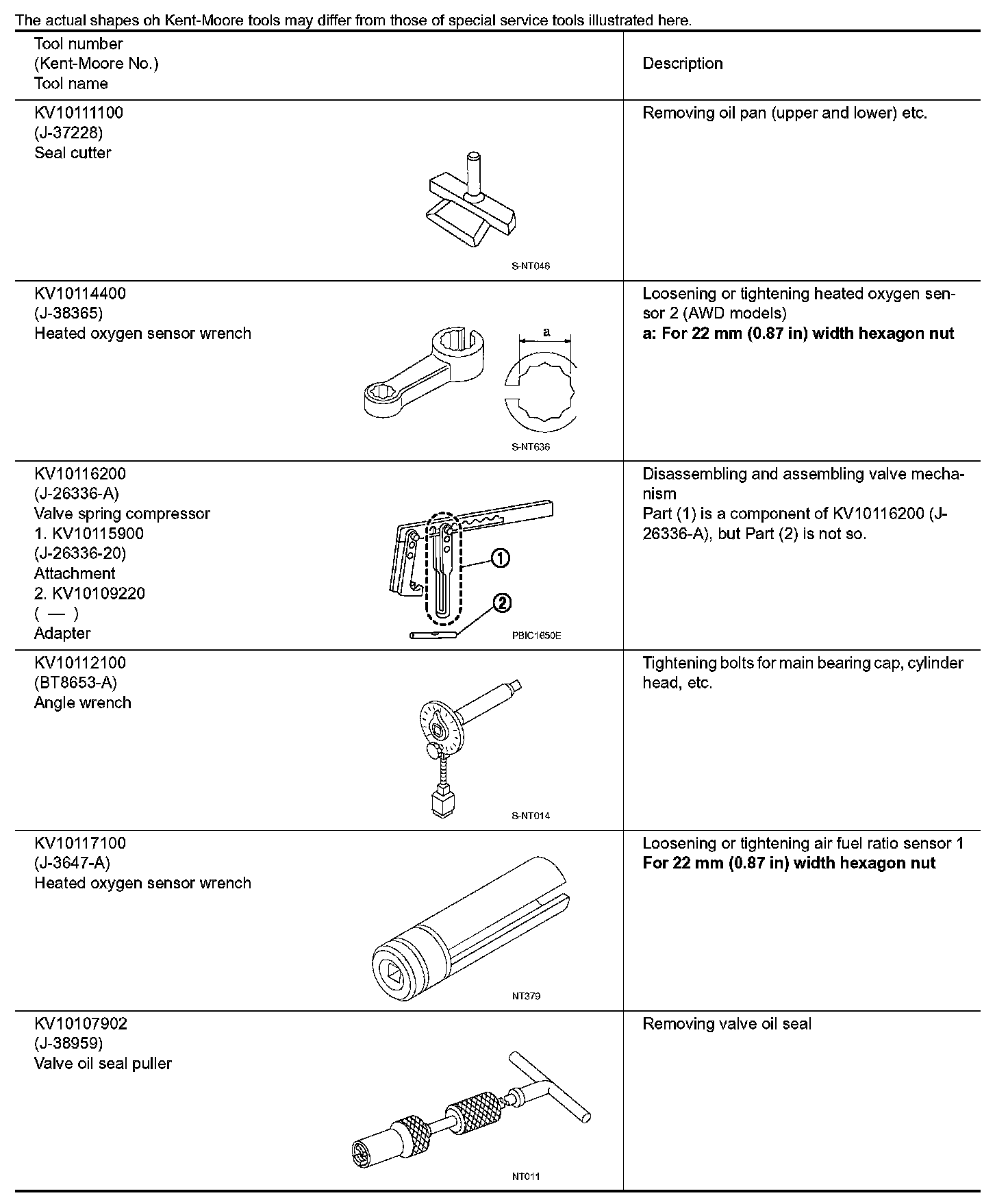 The actual shapes oh Kent-Moore tools may differ from those of special service tools illustrated here.