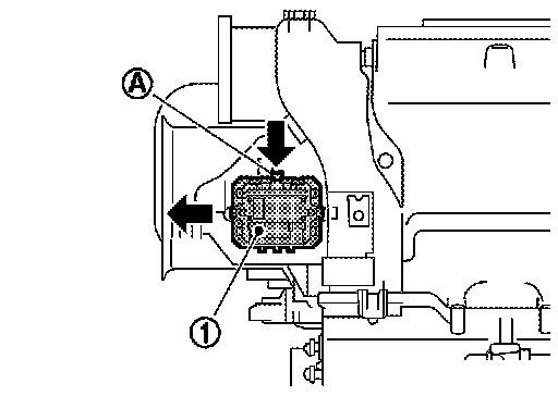 3.Slide power transistor (1) to the left while pressing lever (A), and then remove power transistor.