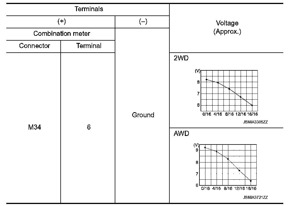 Check continuity between fuel level sensor unit harness connector terminal and combination meter harness connector terminal.