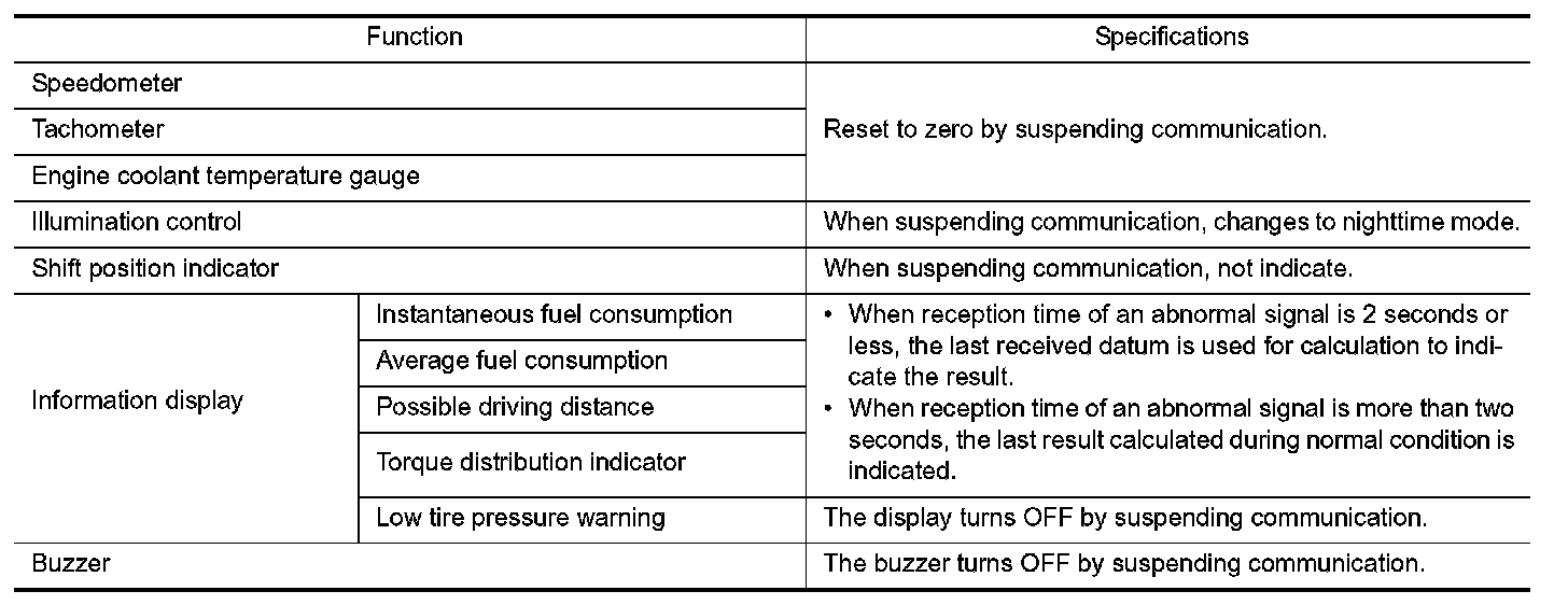 The combination meter activates the fail-safe control if CAN communication with each unit is malfunctioning.