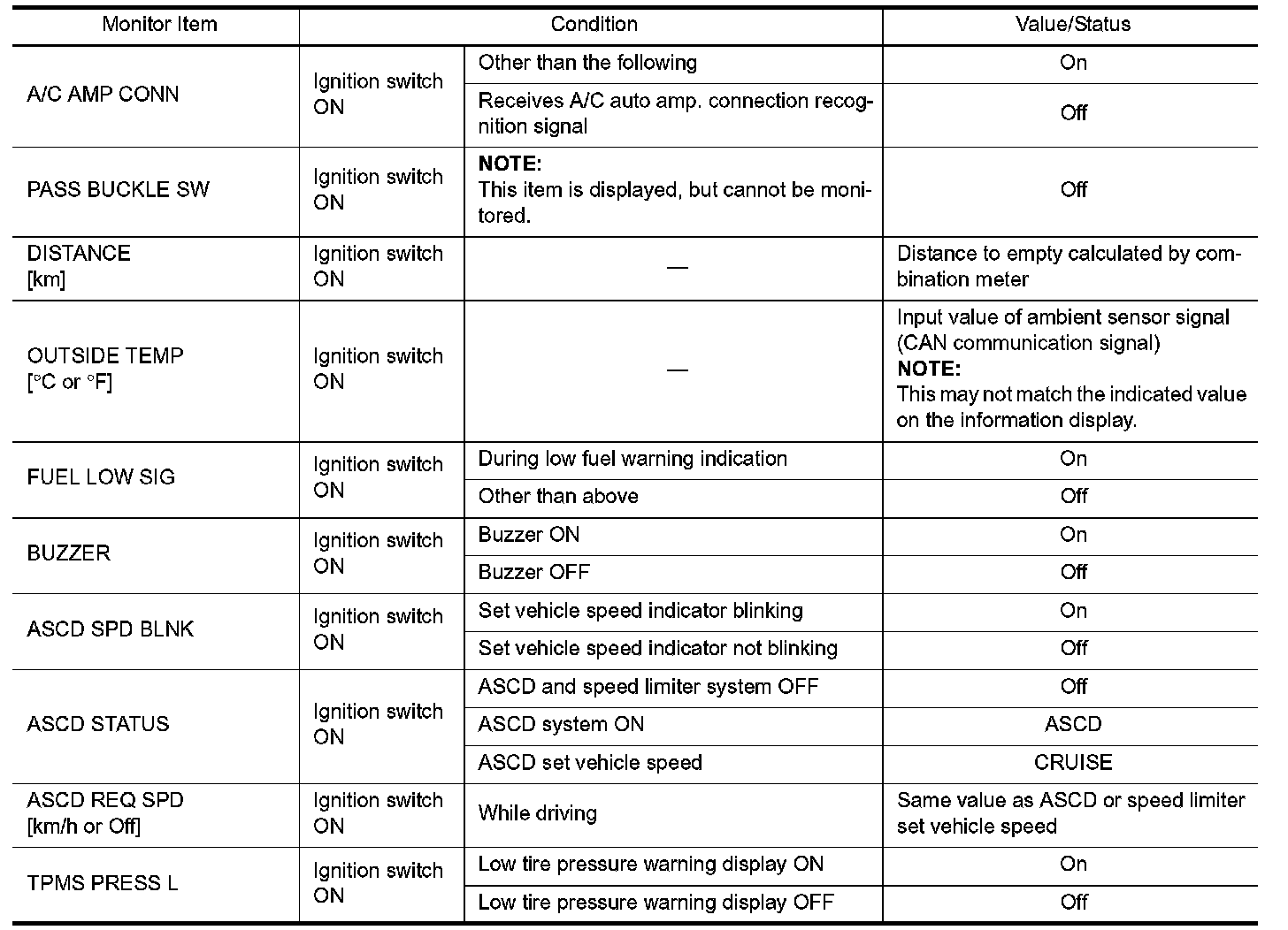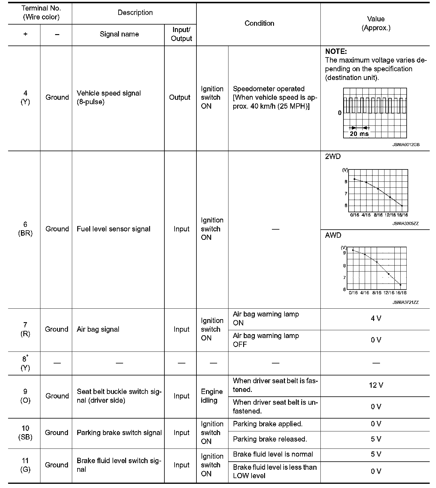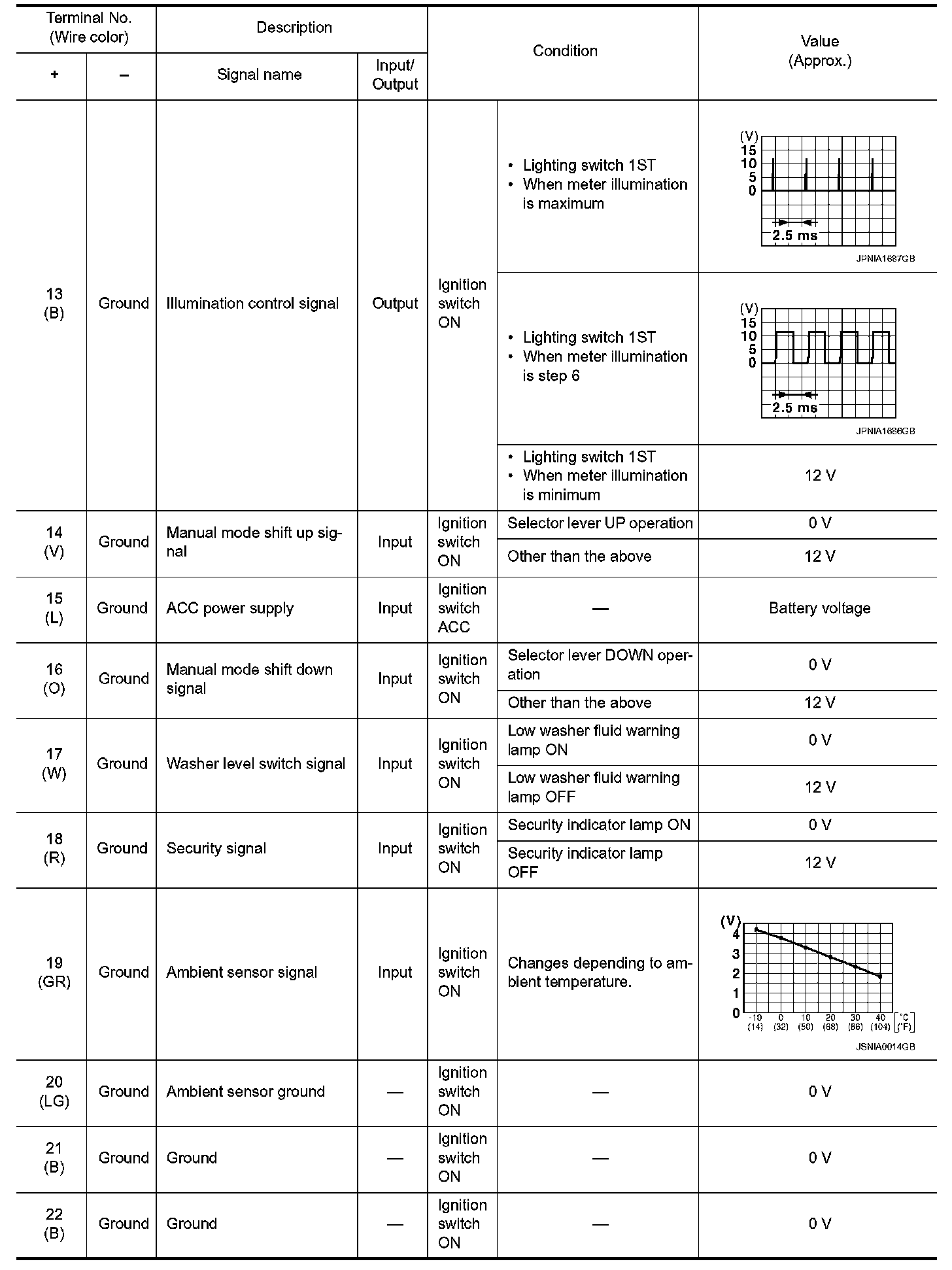 Pinout Values and Diagnostic Parameters
