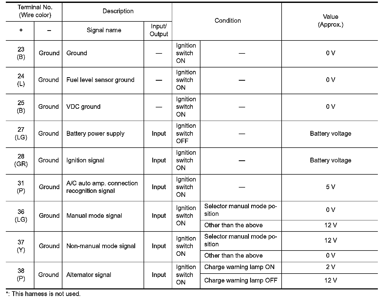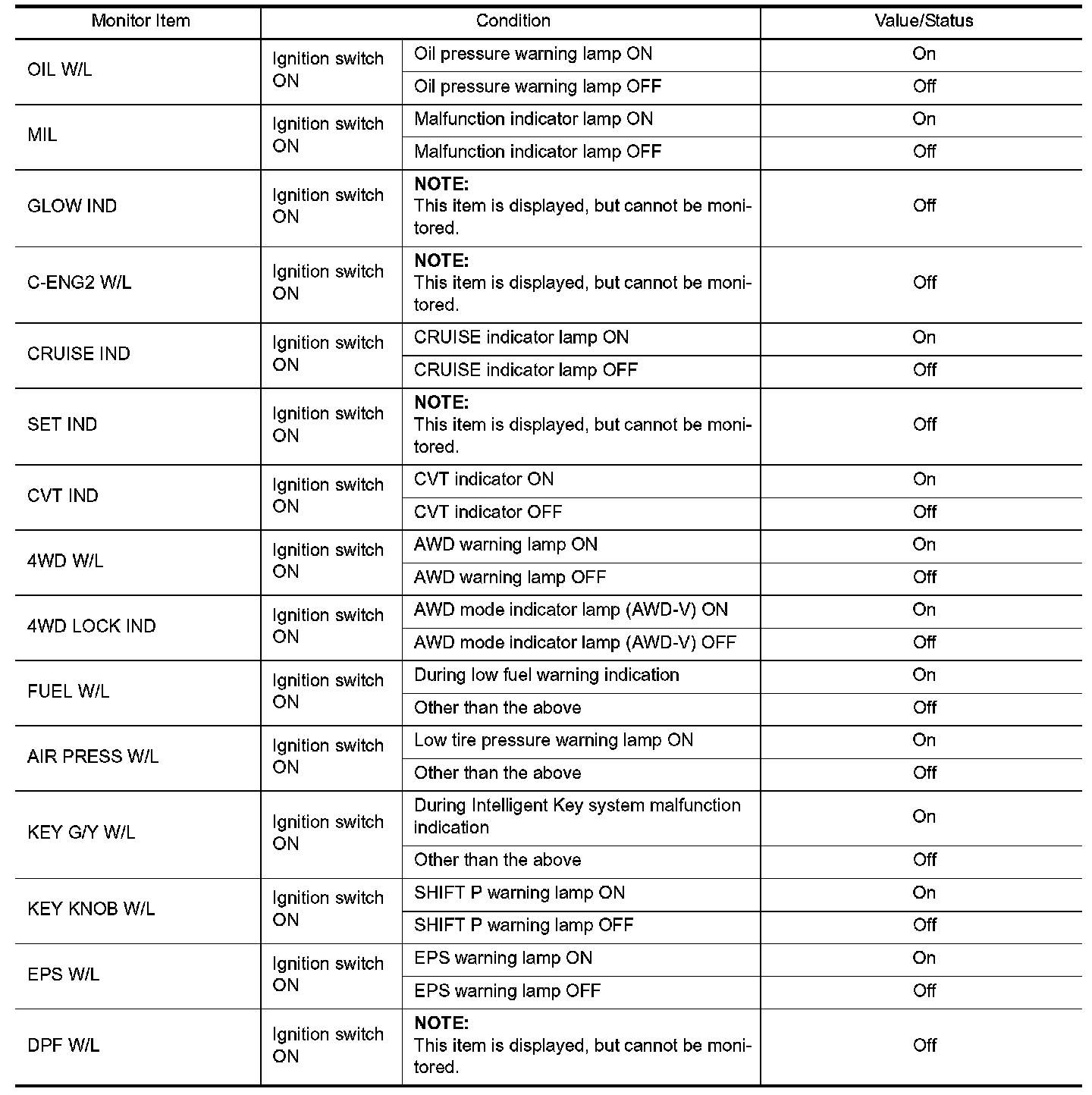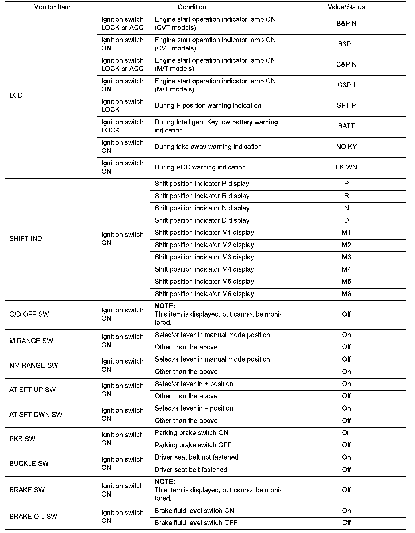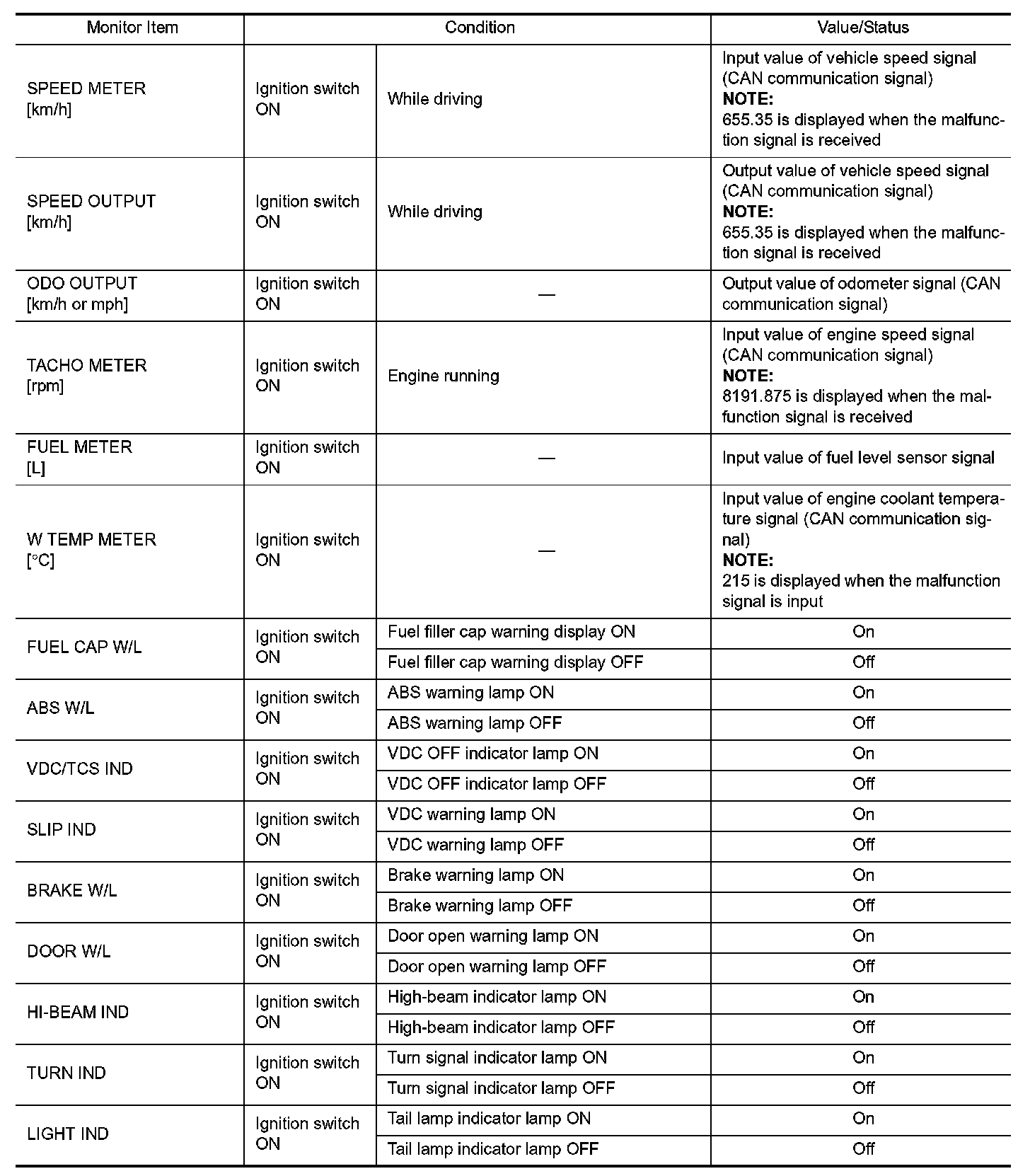 Pinout Values and Diagnostic Parameters