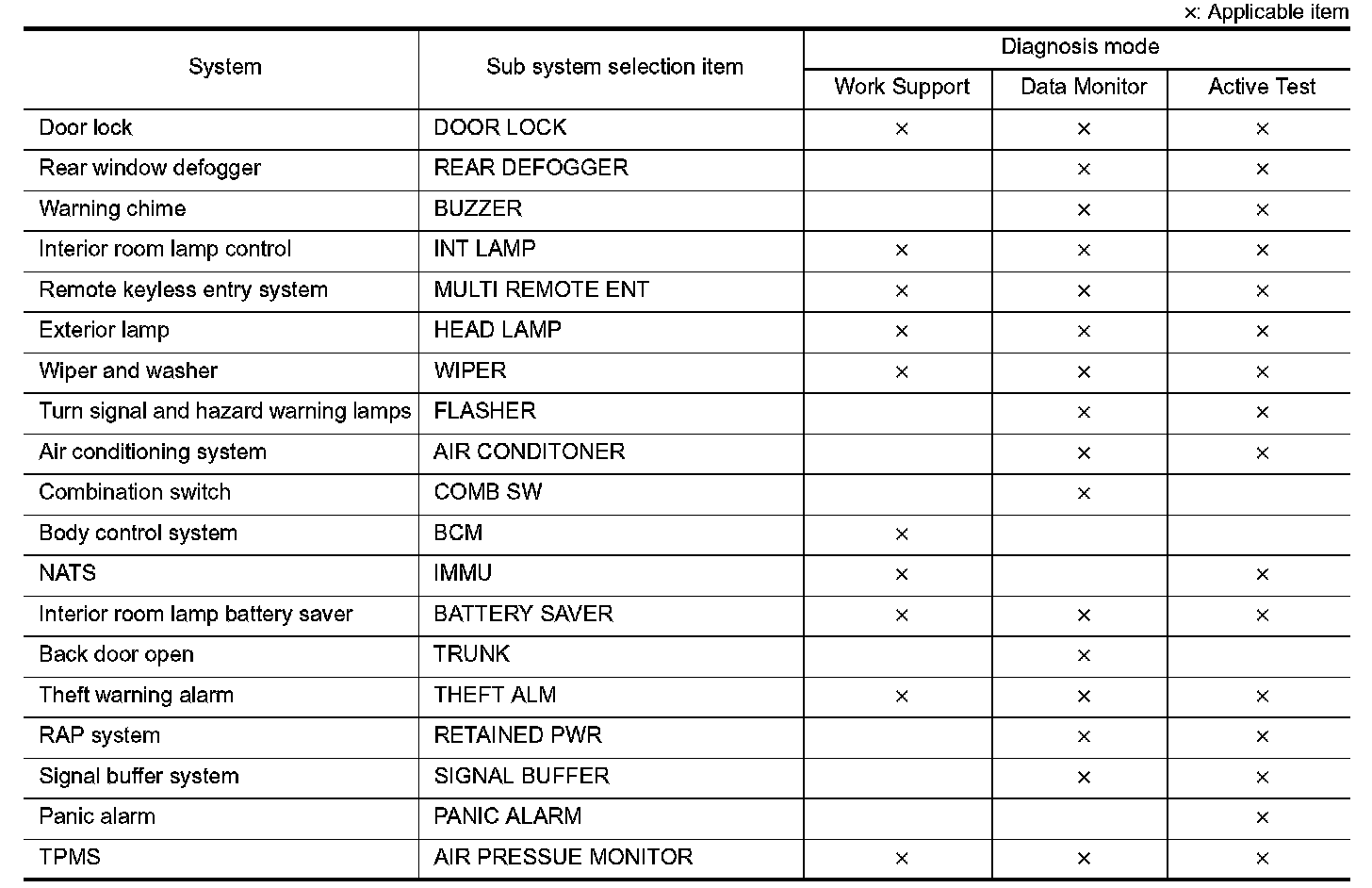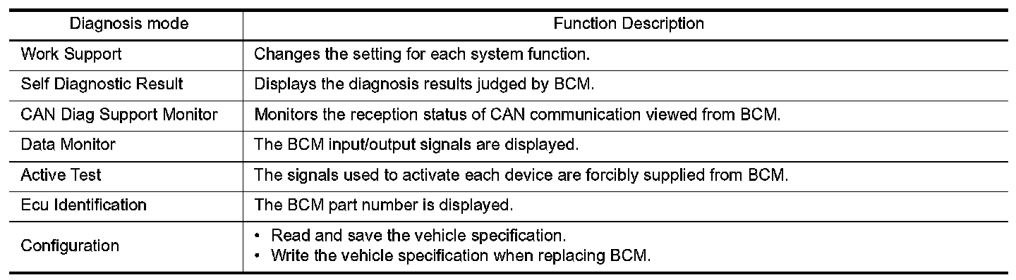 DIAGNOSIS SYSTEM (BCM) (WITHOUT INTELLIGENT KEY SYSTEM)