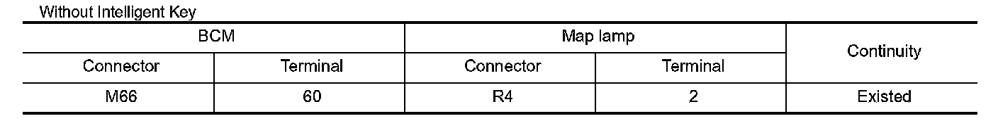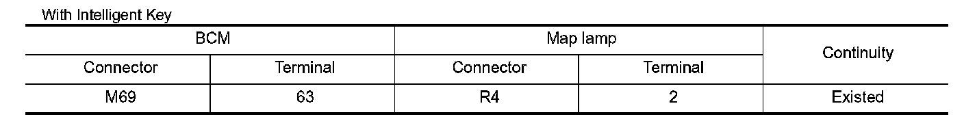 3.Check continuity between BCM harness connector and map lamp harness connector.