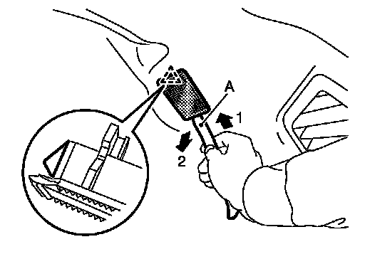 1.Insert a remover tool (A) into the gap between luggage room lamp and luggage side lower finisher RH.