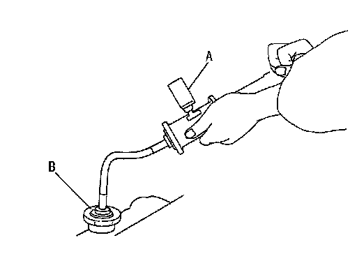 - To check for leakage, apply pressure to the cooling system with the radiator cap tester (commercial service tool) (A) and the radiator cap tester adapter (commercial service tool) (B).