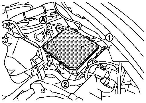 2.Press and expand pawls (A) on lateral side of IPDM E/R cover and remove IPDM E/R (1) from IPDM E/R