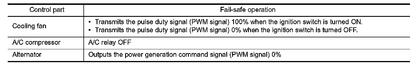 When CAN communication with ECM and BCM is impossible, IPDM E/R performs fail-safe control. After CAN