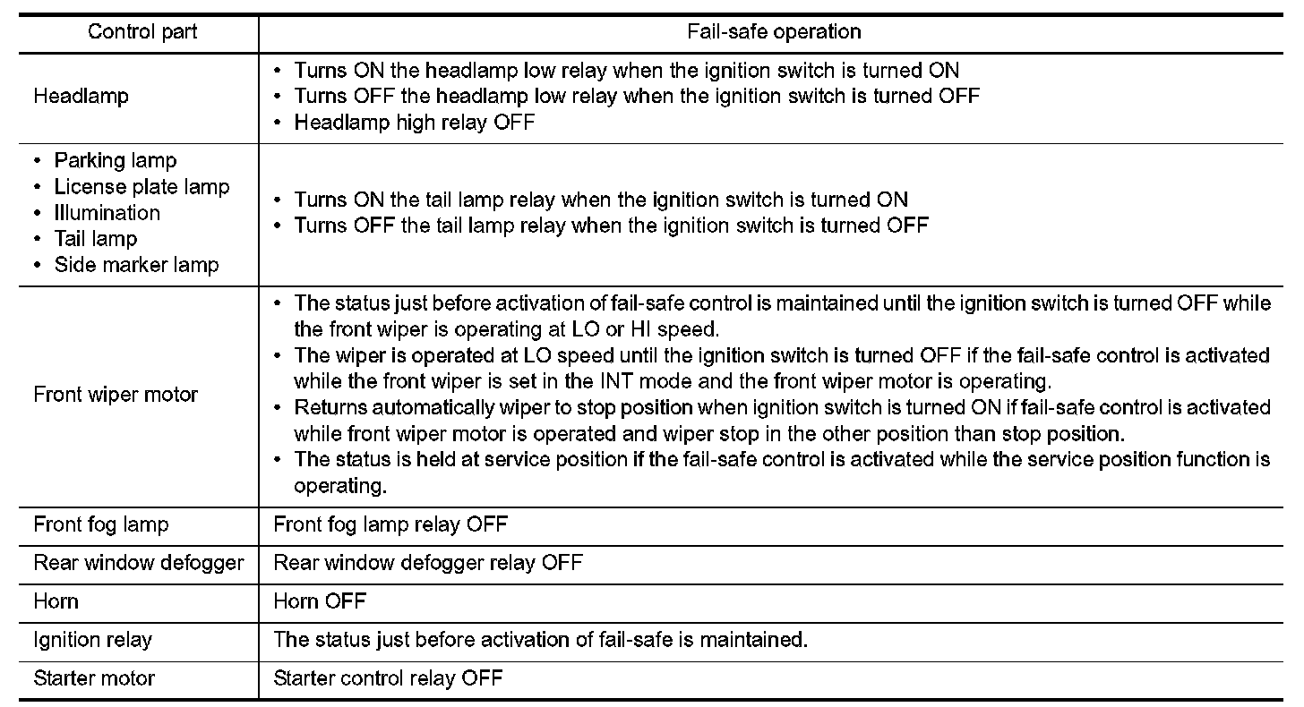 - If the ignition relay cannot turn OFF due to contact seizure, it activates the tail lamp relay for 10 minutes to alert the user to the ignition relay malfunction when the ignition switch is turned OFF.