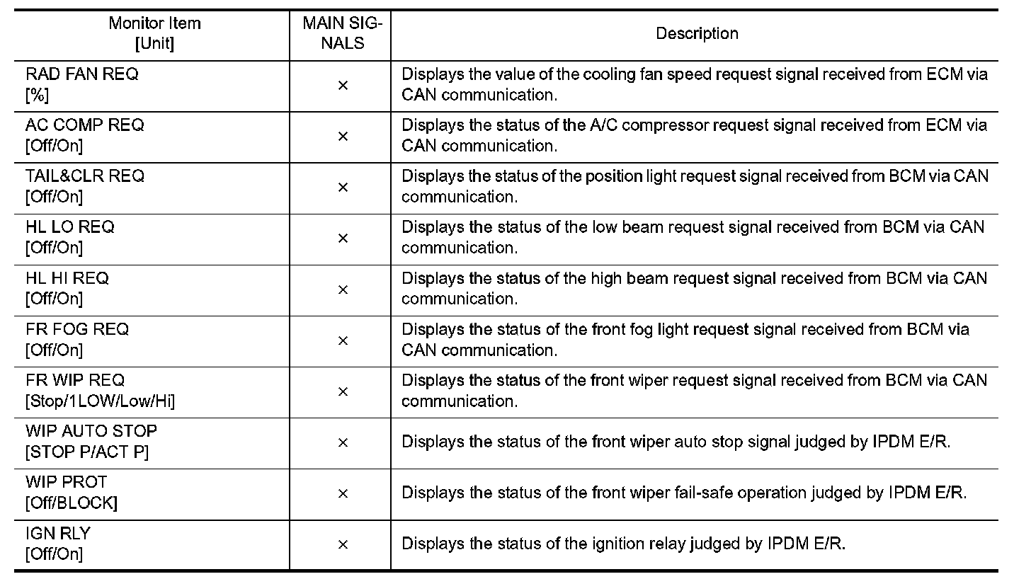 CONSULT performs the following functions via CAN communication with IPDM E/R.