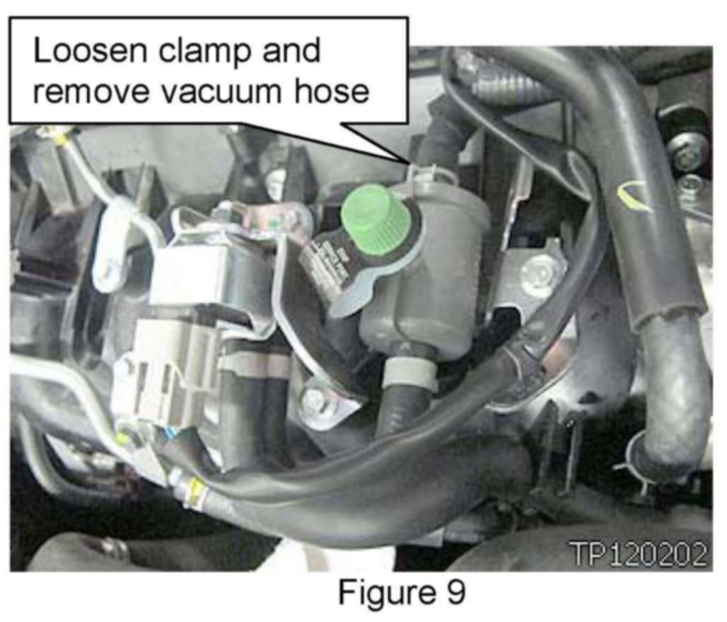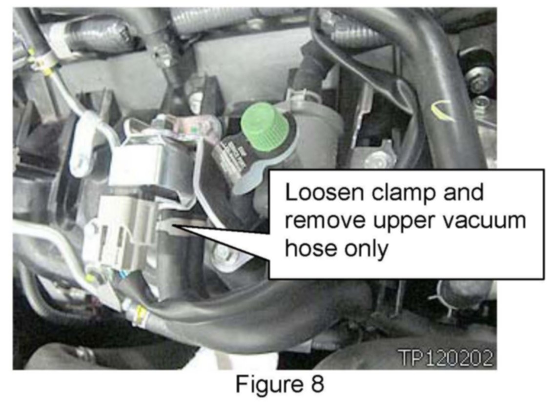 12. Loosen spring clamp and remove rear vacuum hose on EVAP valve.