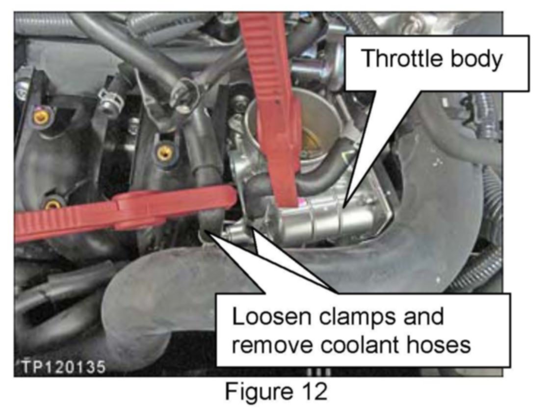 b. Loosen spring clamps and slowly remove coolant hoses from throttle body.