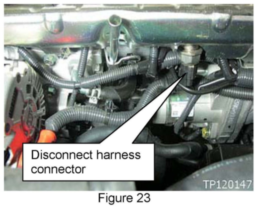 23. Locate fuel rail pressure sensor and disconnect harness connector.