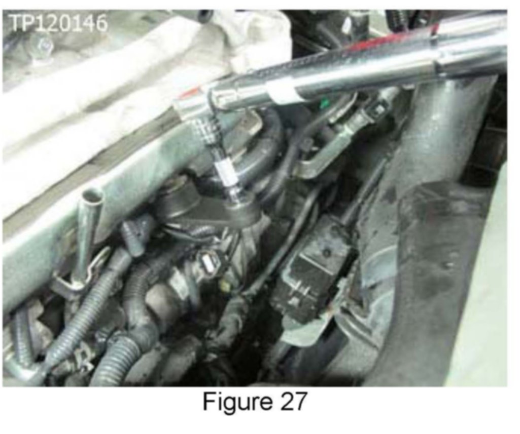 27. Connect fuel rail pressure sensor harness connector.