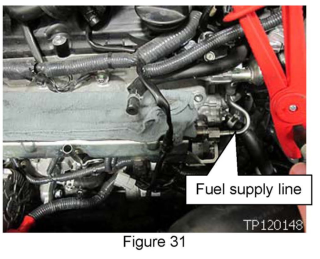 30. Locate fuel supply line attached to fuel rail.