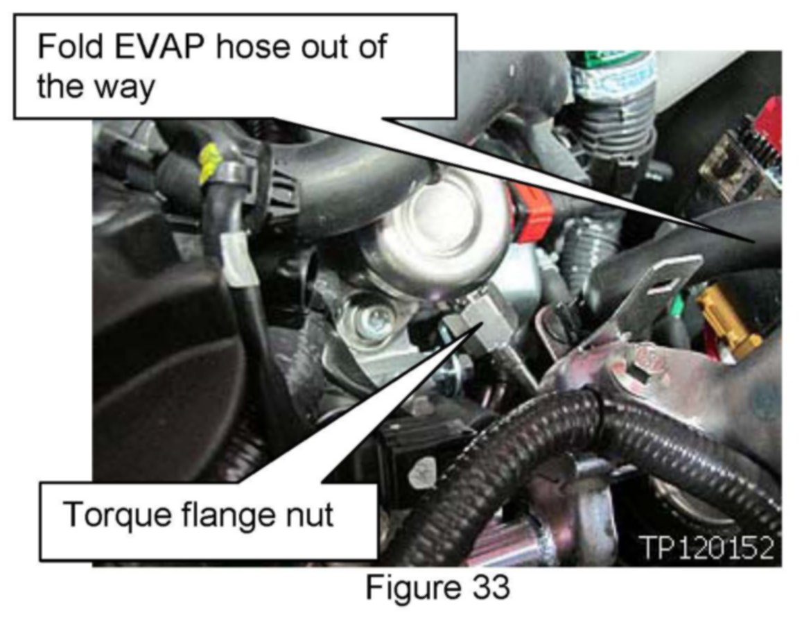 31. Torque fuel rail connector bolts and flange nut.