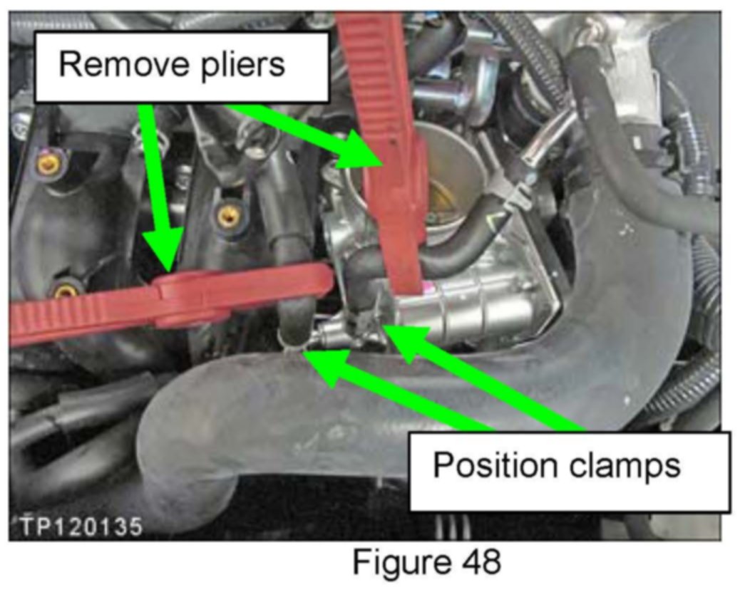 42. Secure coolant hoses to throttle body: