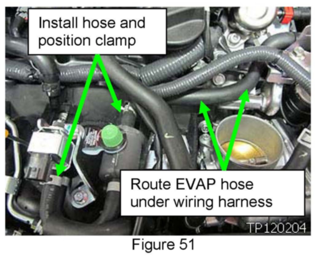46. Align EVAP solenoid hose in slot on intake manifold.