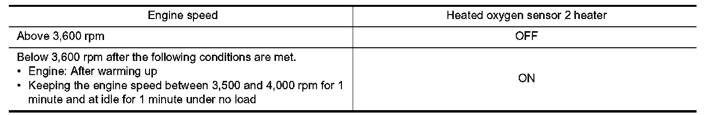 The ECM performs ON/OFF control of the heated oxygen sensor 2 heater corresponding to the engine speed, amount of intake air and engine coolant temperature.