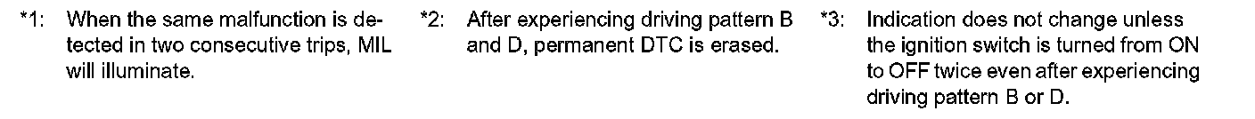 - If self-diagnosis results are erased during the trip of driving pattern B or D, the counter of driving pattern B and D is reset.