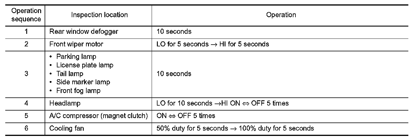 In auto active test mode, the IPDM E/R sends a drive signal to the following systems to check their operation.