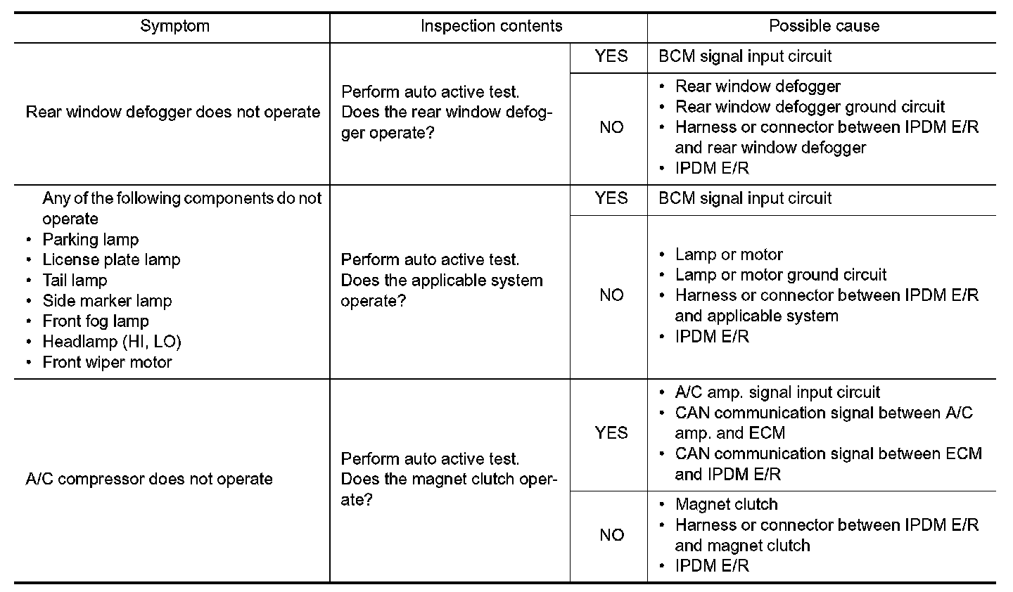 - The auto active test facilitates troubleshooting if any systems controlled by IPDM E/R cannot be operated.