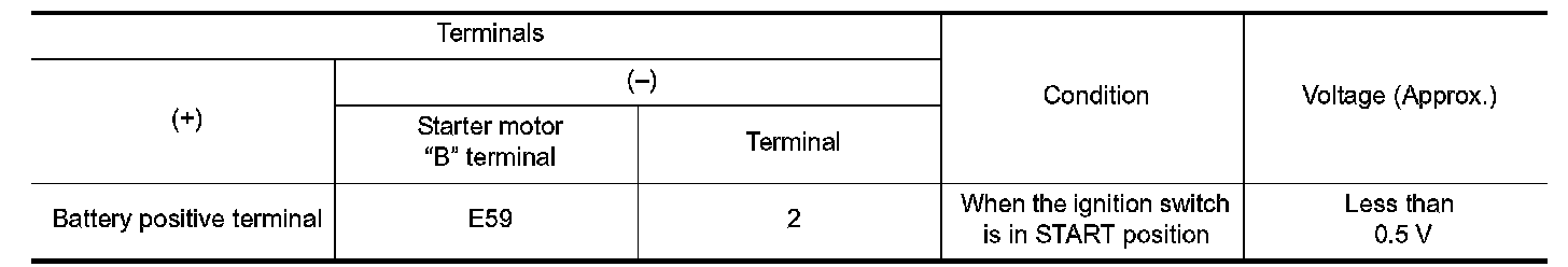 2.Check voltage between battery positive terminal and starter motor "B" terminal.