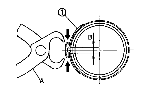 - Install boot clamp (large diameter) (1) securely to boot groove, and crimp it so as to have clearance (B) of 3 mm (0.12 in) or less as shown.