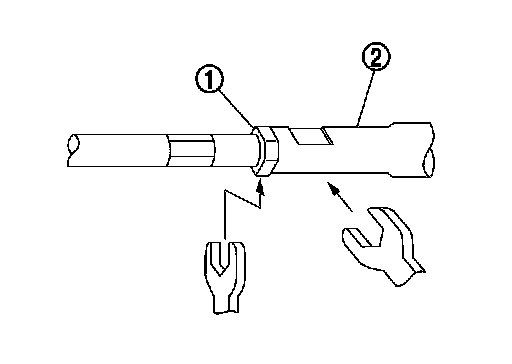 - When tightening the lock nut (1), be sure to fix outer socket (2) with a wrench or an equivalent to prevent the ball joint from getting contact with the knuckle.
