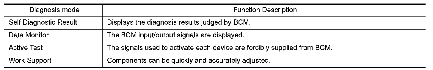 CONSULT performs the following functions via CAN communication with BCM.