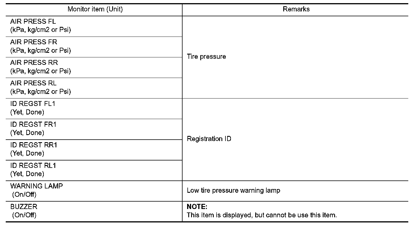 AIR PRESSURE MONITOR : CONSULT Function (BCM - AIR PRESSURE MONITOR)