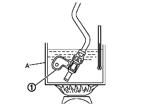 - Fully immerse the heater thermostat (1) in a container (A) filled with water. Continue heating the water while stirring.