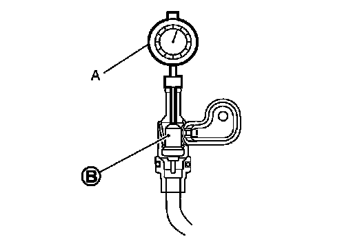 - Place dial indicator (A) on the pellet (B) and measure the elongation from the initial state.
