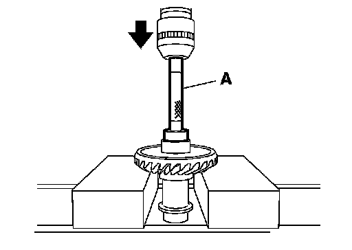 11.Remove center stem from drive gear, using the drift (A) [SST: