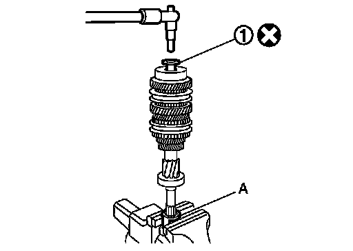b.Remove input shaft rear bearing, using a drift (A) [Commercial service tool].